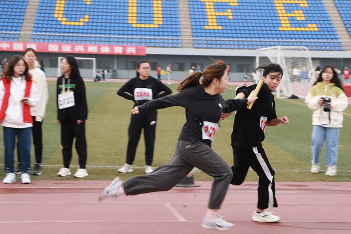 下面是4×400米接力比赛,4×400米一直是公司的传统优势项目,公司均保持着太阳集团tyc539男子组及女子组的比赛最佳记录,本次新生运动会公司也稳定发挥,男子组与女子组代表队勇往直前,最终斩获男子组第三名和女子组第一名的好成绩且在本次比赛中女子组队员以5:08.930的绝佳成绩打破金院女子组自2019年保持到现在的记录,载入史册。她们用自己的行动表达着她们“长江后浪推前浪”的不断进取的精神,以新生“初生牛犊不怕虎”之名打好了四年老员工活的第一枪。