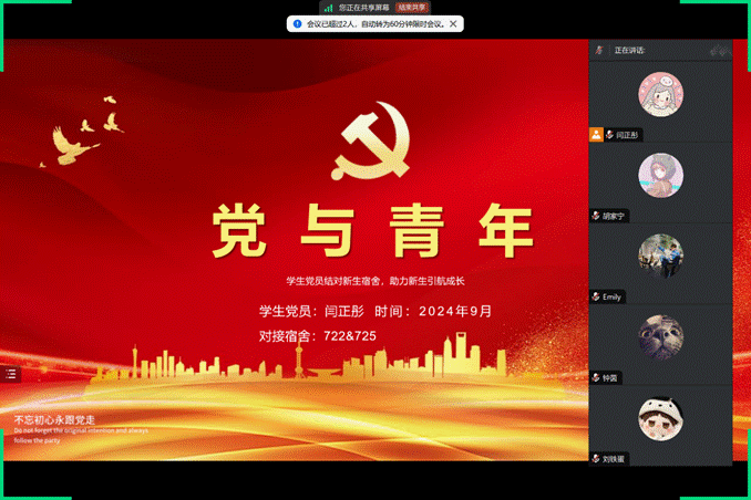 东一722、725宿舍闫正彤学姐结合入党誓词,端正了新生们的入党动机,同时强调入党关键时间节点,来减少新生们对入党程序的疑惑;东一524宿舍张小筱学姐主要介绍了党员基本知识、党员行为规范等。
