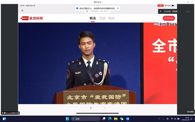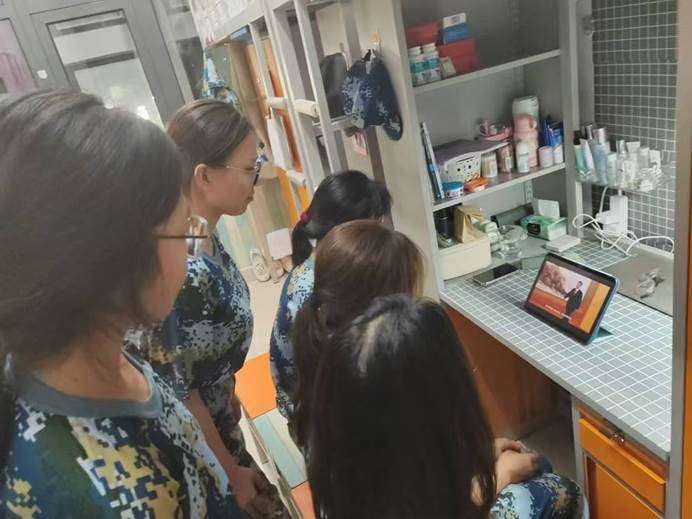 为了弘扬爱国主义精神,普及国防教育,使新生们增强国防观念,掌握必要的国防知识和军事技能,自觉履行国防义务,关心、支持、参与国防建设。东一606宿舍在武晓琳学姐的组织下,东一521宿舍在韩晓娜学姐的带领下,共同观看了“生动实践面对面——全市高校同上一堂国防课”活动的回放。