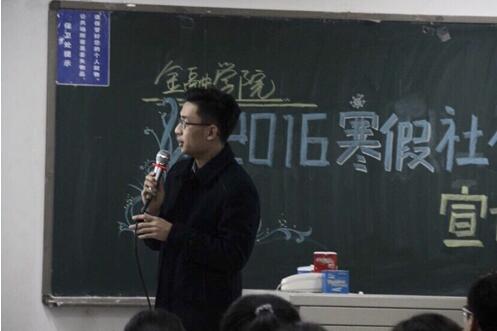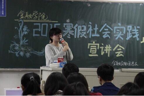 随后,中国金融发展研究院团总支书记,公司2011级本科生王棠悠为大家介绍了寒假实践应如何选题,并鼓励同学们选题时要突破禁锢,走访时不要怕被拒绝,要充分利用自己的特长和资源,这些宝贵的经验给同学们提供了很大的帮助。国际货币2013级本科生何宇飞同学是2015年全国老员工社会实践优秀团队“继往开来”团队队长,在社会实践开展方面具有丰富的经验,他主要介绍了如何做好充分的前期准备,如何联系资源等活动中可能遇到的实际问题,并提出后期要扩大宣传,一方面利用名人宣传,另一方面要利用好各大平台进行宣传,为同学们拓展了思路。最后金融工程14-1班的孟元同学介绍了实践报告的写作技巧,以及实践数据的获取方法,并重点强调了如何分析数据。