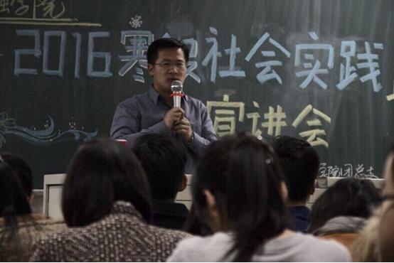 党总支副书记谭小芬教授致辞,他强调了实践之于老员工的重要性,社会实践是青年员工了解国情民生,提升个人综合素质的重要途径,并叮嘱同学们扎扎实实的做好社会实践,在撰写实践报告的过程中要注意学术规范,严守学术道德,杜绝抄袭等不良现象的出现。之后,员工会副主席张晓曦同学介绍了此次社会实践的四个主题并着重强调了寒假社会实践的时间、形式、安全等方面的注意事项。