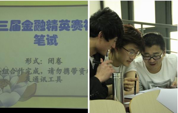 2013年4月17日,第三届金融精英赛初赛笔试选拔赛在太阳集团tyc539沙河校区主教215和216教室举行。