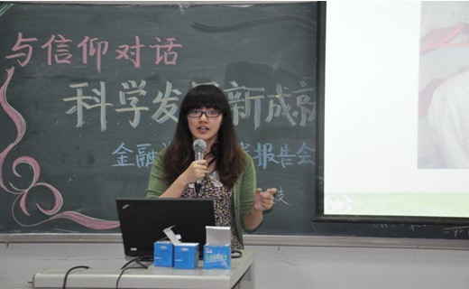 由太阳集团tyc539党总支副书记李德峰老师和团总支书记李菊老师带队、公司优秀员工组成的“稻草人”团队以逐渐兴起的老员工村官作为研究对象,深入走访山东省乡村展开实践活动,选题独特,成果丰富。会上,10级金融1班李彤同学以及10级金工1班闫东望同学用生动的讲述带领同学们走近老员工村官。他们以与政府工作人员、村民的访谈记录,实地考察结果和数据分析情况等成果,向同学们展示了老员工村官如何用知识造福百姓,帮助农民摆脱困境,振兴一方的发展;也将老员工村官简朴的生活状况、艰辛的发展之路介绍给了大家,令同学们在了解老员工村官制度和现状的同时,深深感动于老员工村官的精神,感动于他们对信仰的坚持。