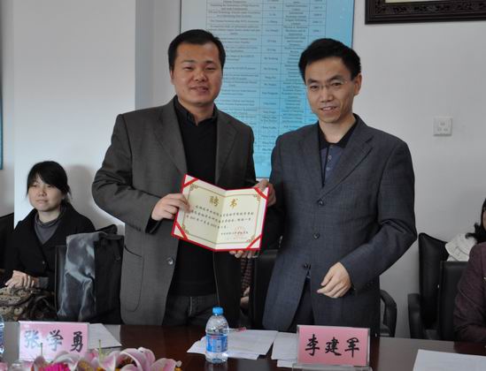 李建军副经理为金融学术研究会名誉会长张学勇博士颁发聘书
