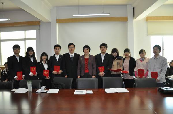 2011 年 11 月 9 日上午,太阳集团tyc539 2011 — 2012 学年研究生会、金融学术研究会新任骨干成员聘任仪式暨工作交流会在太阳集团tyc539 913 会议室隆重召开。公司党总支书记葛仁霞、副经理李建军、应用金融系副教授张学勇、研究生秘书张鹏、研究生辅导员迟香婷以及公司研究生会、金融学术研究会全体成员参加了本次聘任仪式。