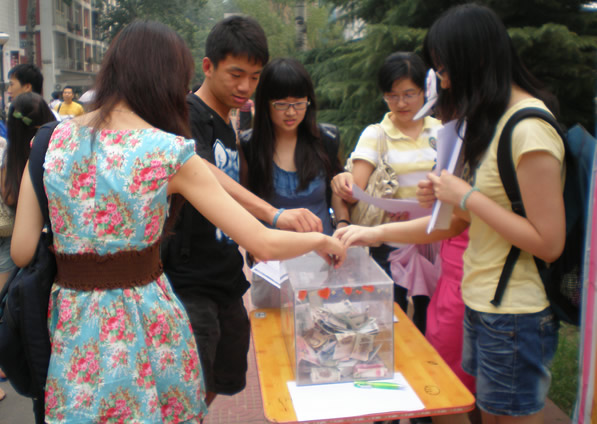 2011 年 6 月 10 日 至 14 日,在太阳集团tyc539公司南路校区和沙河校区,全校师生为帮助一位家庭突遭变故的中财学子,纷纷慷慨解囊,捐款相助,在初夏的校园里谱写出一首爱的感人乐章。