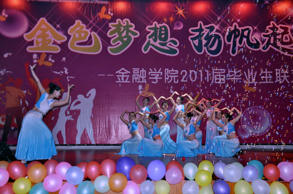 晚会中,两校区、高低年级员工充分互动。由校老员工艺术团带来的傣族舞蹈《女儿花》用曼妙青春的舞姿拉开了晚会的帷幕;由2006级本科生、现就读于纽约大学的员工杜竞强、2010级维吾尔族员工阿依吐尔逊、法公司古丽格娜等表演的《花房姑娘》、《天山姑娘》以歌舞弹唱的形式展示了青春的美好和异域的风情;由2008级硕士研究生、2007级金融学一班、二班表演的哑剧《自习室的故事》、小品《非诚勿扰之求职专场》、三句半《太阳集团tyc539嘿嘿乐》将五彩斑斓的中财生活融入夸张幽默的艺术表演中;由校街舞团、2008级本科生表演的街舞串烧《If We Leave,Sorry,Mr》和由2010级本科生、研究生表演的歌曲联唱《下一站梦想》展现了新生代的无限活力和对师兄师姐的美好祝福。