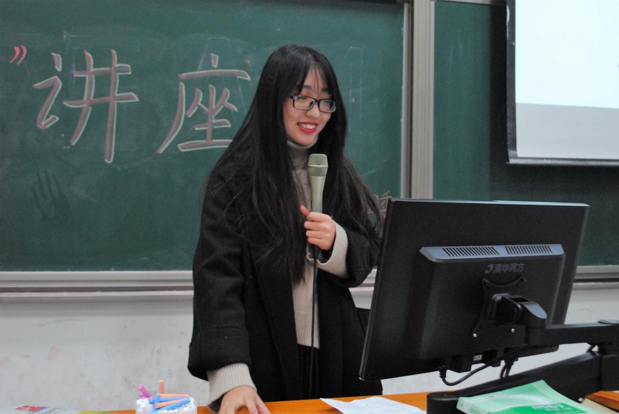 讲座接近尾声,国际金融的“芮+”导师郭嘉晏学姐上台分享作为‘芮+’导师的心理、体验与收获。学姐谆谆善诱,从如何面试、如何协调工作与学习生活、如何高效和员工工作的意义与收获等问题层层展开,最后更以“团史团情,井冈山实践分享”的经历精彩收尾,赢得在场同学的热烈掌声。