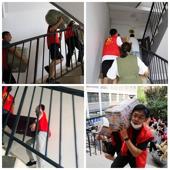 图7 高年级志愿者穿梭于一到六楼之间搬运行李
