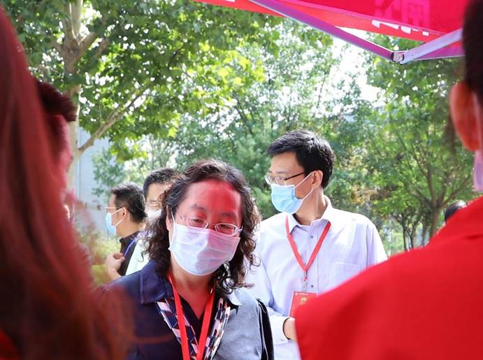 图3 公司党委副书记陈明、总会计师蔡艳艳在迎新点指导工作