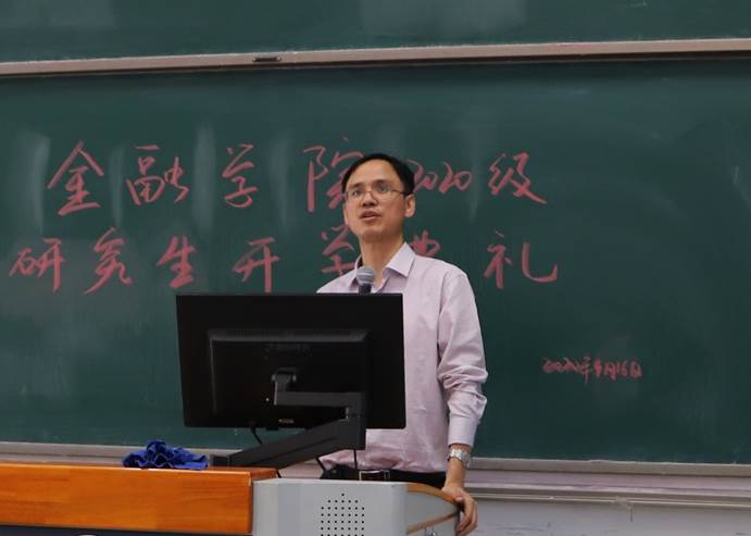 教师代表苟琴老师结合自己的经历,向同学们分享了研究生在新的学习阶段应该具备的品质与素养。面对新的不确定性,她希望同学们能果断地做出选择,鼓励同学们继续追求卓越,进一步提升自己的人力资本和全要素生产率,提升专业能力和综合素养,完善解决实际经济金融问题的逻辑分析框架,提升严谨规范的科学研究能力,在复杂的国内国际背景下,在挑战和机遇并存的时代,能够学以致用,胸怀天下,怀揣理想,坚定向前。