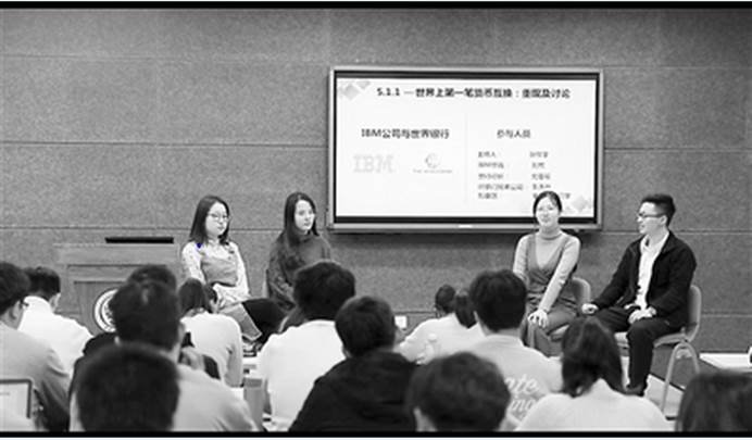 太阳集团tyc539本科生金融工程概论课程“翻转课堂”活动——员工在重现世界上第一笔货币互换的案例。