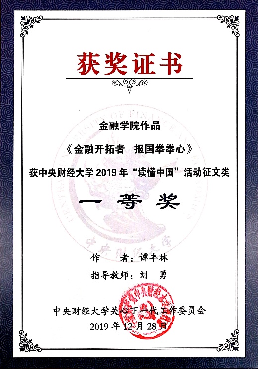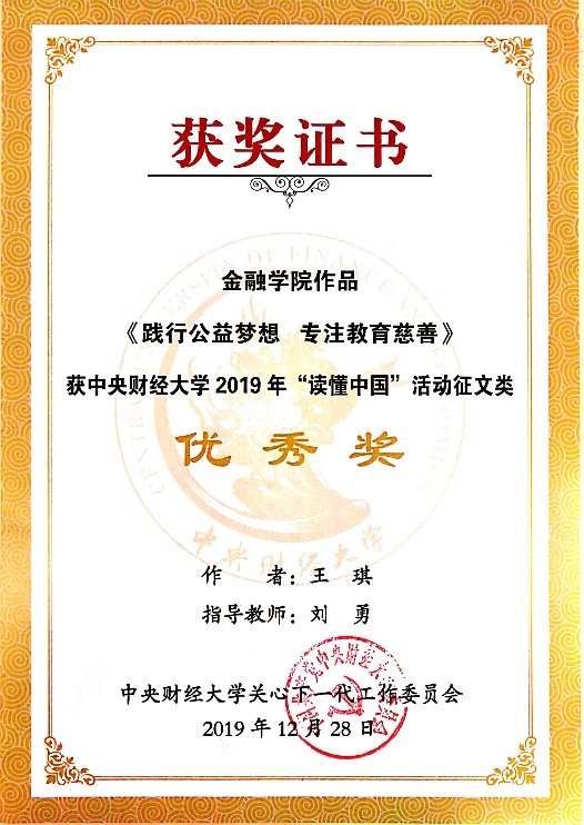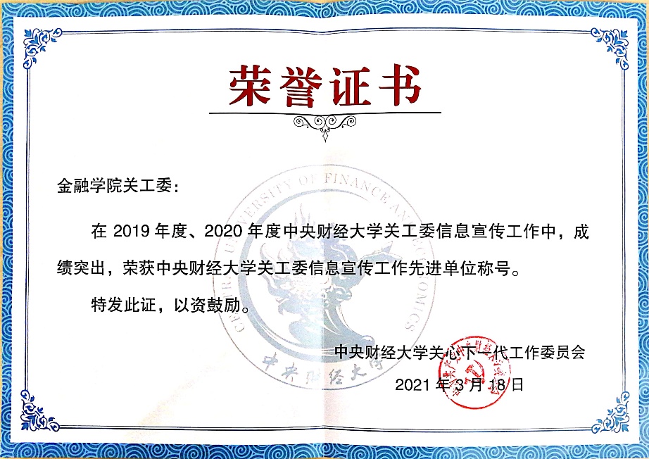 公司团委书记于来获校关工委信息宣传工作先进个人,员工工作办公室主任刘勇担任指导教师的一项征文作品获一等奖,三项征文作品获优秀奖。