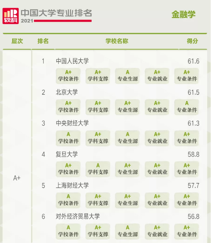 6月22日,高等教育评价专业机构软科正式发布2021“软科中国大学专业排名”。软科以全国排名前2%或前2名作为A+专业入选标准,公司全部三个专业均获得A+等级且位列前三甲。其中,金融学专业在上榜的201个专业点中位列第3,金融工程专业在上榜的136个专业点中位列第2,金融科技专业在上榜的9个专业点中位列第1。