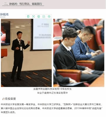 今年3月初,公司遴选了32名教师组成2021年招生“宣传专员”队伍,报送了两名“龙马讲堂”专家做专业科普宣讲,推荐了金融学、金融工程、金融科技3名优秀在校生和4名优秀毕业生,参与“财宝说儿”栏目采访,凝练公司、公司办学特色和专业优势,深挖优秀员工和员工的校园成长精力,树立更生动形象化的招生品牌。