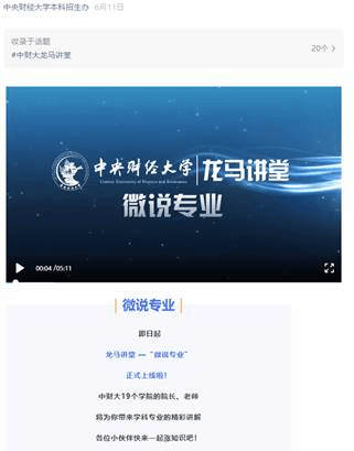 以公司学科、专业、团队队伍以及人才培养的最新成果为内容,依托公司官方招生公众号发布“微说专业”推送;精心设计公司介绍视频文字内容,完成《为国而生,与国同行,做新时代金融创新的排头兵》视频录制工作。