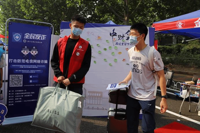 微风拂煦,新生陆陆续续前来报到。现场工作人员通过扫描录取通知书条形码帮助新生完成注册报到,同时把钥匙、员工证与员工卡再三确认无误后交递给新生。新生报道指南、入学手册、宿舍入住协议、爱心口罩则被悉数放入事先准备好的公司自主设计的纸袋中已提前由志愿者放入新生宿舍中。