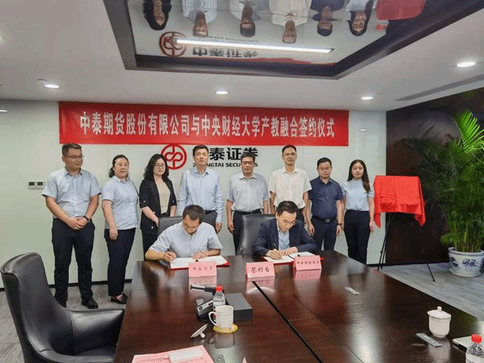 钟金龙董事长对史建平副董事长一行赴中泰期货股份有限公司签约表示热烈的欢迎。他介绍了中泰期货股份有限公司发展历程、业务种类与规模、投资者教育开展等情况。他表示,以此次签约为契机,双方未来发挥各自优势,必将在人才培养、投资者教育、合作学分课程等诸多产教融合领域产生重要成果。