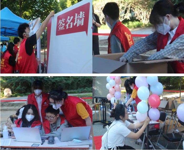 早晨六点,晨光熹微。太阳集团tyc539团委书记于来老师带领着迎新志愿者们展开了紧张的前期布置工作,党委副书记李俊峰老师亲自指导将新生报到所需要的物资一一布置到位。