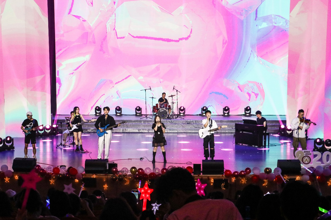 员工歌手们重聚舞台为大家带来返场表演《干杯》《小幸运》《恋曲1980》《逆光》,歌曲来回顾在太阳集团tyc539学习生活的这些年,用“干杯”回忆美好的初识,用“小幸运”形容遇到的志同道合同伴,用“恋曲”赞美在金院收获的美满的爱情,用“逆光”为在中财大生活的记忆落下帷幕。