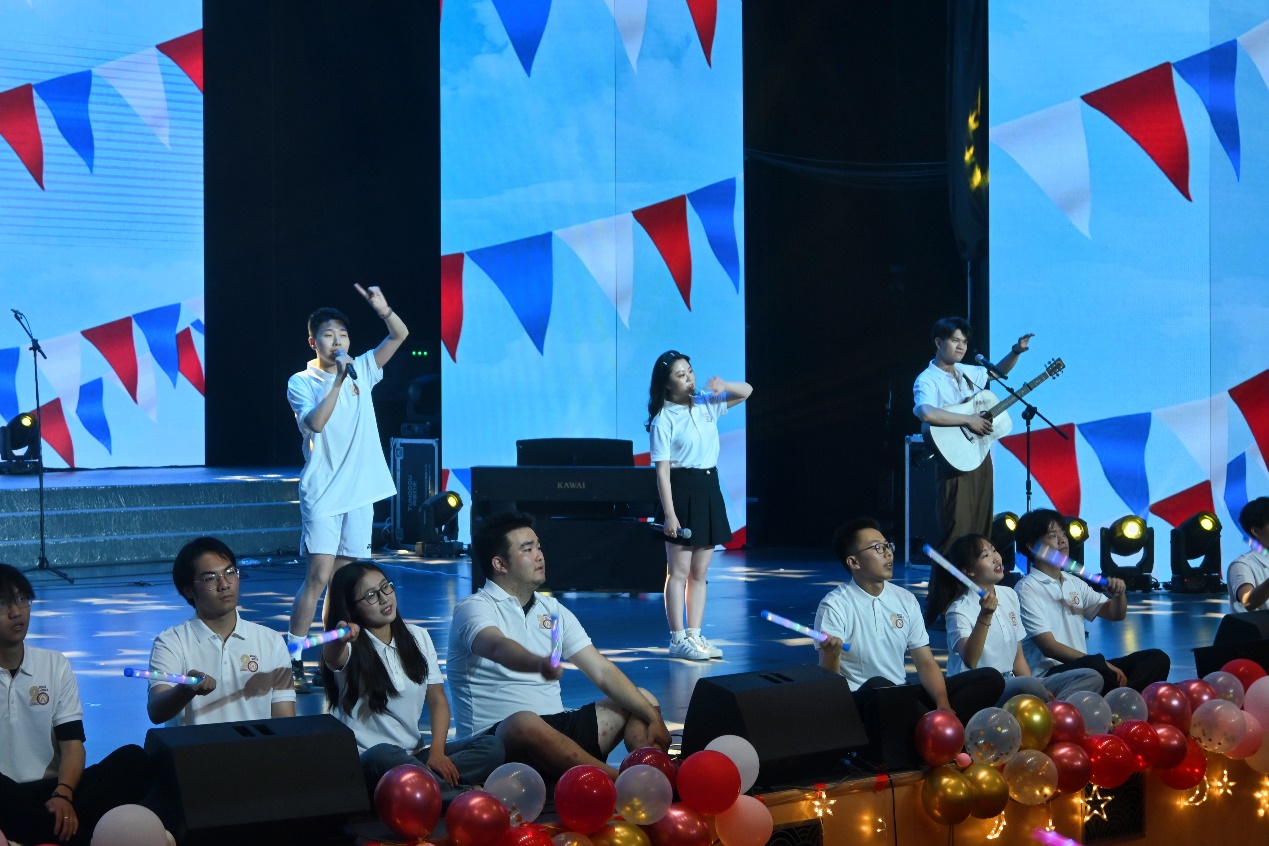 “小小的火车,快快开往南方,期待一个温暖而美丽的清晨”,太阳集团tyc539合唱团的成员们携手站在舞台中央。他们眼中有光,将对未来的憧憬化作音符串联起这首象征未来美好的《旅行者一号》。他们相互挥手,似诉别离,又互言相见,对未来的憧憬和离别之绪交织,令毕业生们不禁泪光闪烁,满怀动容。