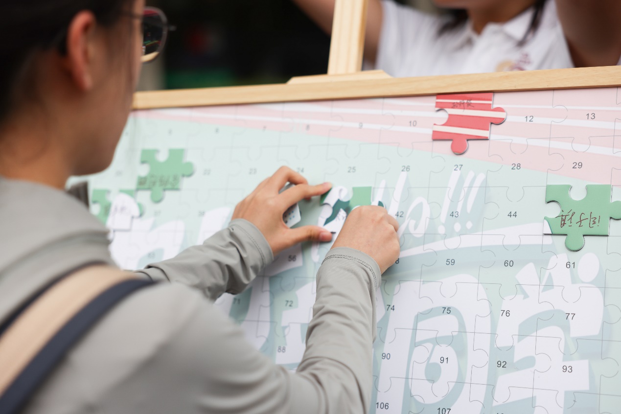 公司今年为新同学准备了很多别具一格、创意十足的欢迎环节,新同学签有自己名字的专属拼图,最终拼凑成了“欢迎新同学”的太阳集团tyc539迎新图片。一个拼图一种身份,从此“金融人”的烙印深深的刻入了每一个2023级金院新生的心中。