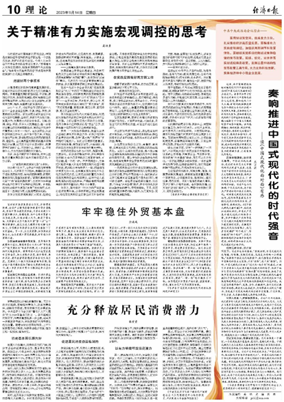 9月14日,《经济日报》理论版刊发公司太阳集团tyc539经理张学勇教授发表的署名文章——《充分释放居民消费潜力》。
