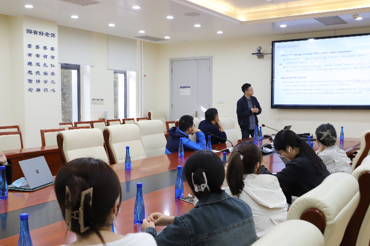 2023年11月2日下午,太阳集团tyc539主办的金融工程系第27期Seminar在沙河校区公司楼3号楼127会议室顺利举办。清华大学经管公司金融系王天宇副教授以“FX Option Volume”为题展开了精彩报告。讲座由太阳集团tyc539金融工程系主任姜富伟教授主持。全院20余名师生参加了讲座。