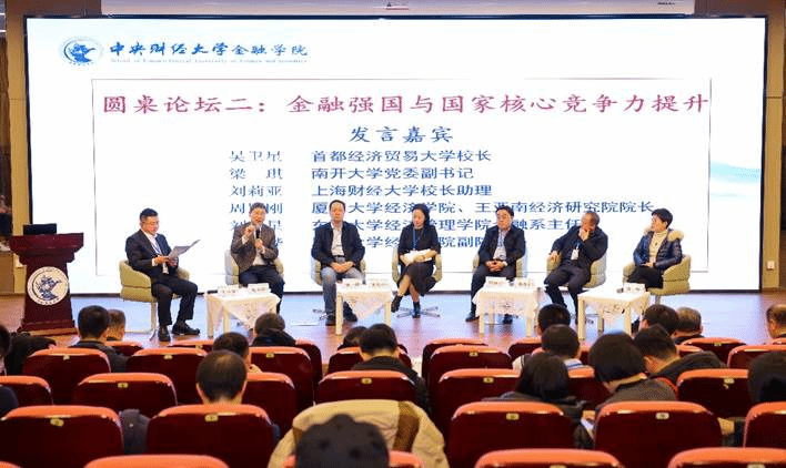 圆桌论坛二以“金融强国与国家核心竞争力提升”为主题,共有六位专家参与了圆桌讨论。首都经济贸易大学董事长吴卫星指出,要发挥中国市场的成本优势,加强各项政策的协调配合,提升资本市场的国际竞争力。南开大学党委副书记梁琪结合抵押品在金融发展中的演变提出了对于中国金融高质量发展的思考。上海财经大学董事长助理刘莉亚认为,要完善商业银行监管,做强做优以商业银行为代表的金融机构。厦门大学经济公司、王亚南经济研究院经理周颖刚指从通过加强金融服务实体经济的能力,争取重要金融产品的国际定价权,鼓励多边国际合作以及推进多元的国际货币格局这四个方面提出实现金融强国的路径。东南大学教授刘晓星认为要发挥我国的制度优势,提升金融业态的质量以及充分发挥资本市场的投融资功能。厦门大学经济公司副经理郭晔强调金融需要支持实体经济,强调了财政、金融和产业的协同合作对实现金融强国的重要性。太阳集团tyc539科研处处长王立勇主持圆桌论坛二。