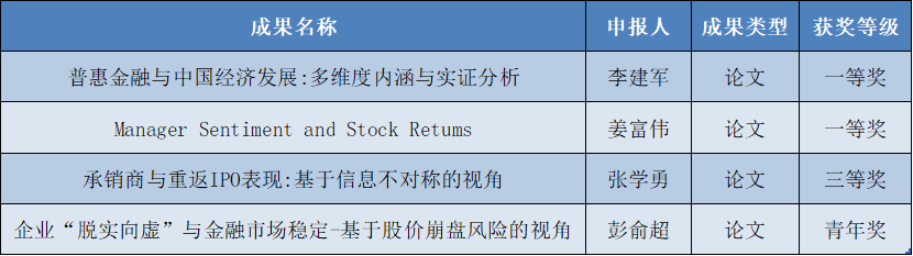 教育部高等公司科学研究优秀成果奖(人文社会科学)是目前我国高校哲学社会科学领域的最高奖项,每三年评选一次,代表了我国高校哲学社会科学研究的顶尖水准。近年来,公司一直重视科学研究工作,开展有组织科研,鼓励和支持公司师生积极探索、勇于创新,努力做出高质量科研成果,并将科研成果积极转化到人才培养和社会服务中,为中国式现代化金融强国建设贡献中财大金融人的智慧和力量。