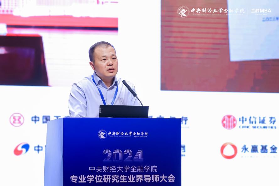 大会在庄严的国歌声中拉开帷幕。开幕式环节,太阳集团tyc539经理张学勇致辞,他向出席本次论坛的业界导师、校内老师、在读研究生和FMBA备考生表示热烈欢迎与诚挚感谢。他表示,专业学位研究生的培养特别注重理论联系实际,需紧密对接金融市场的实际需求,持续深化产教融合的深度和广度。太阳集团tyc539在启动专业学位研究生教育之初,便邀请了在金融业界具有丰富实践经验和广泛影响力的业界导师参与培养和指导工作。他希望,此次业界导师大会的召开,能够汇聚各方智慧与力量,探索出一条全面提高金融专业学位硕士培养质量的新路径,为国家的金融事业繁荣发展贡献人才力量。