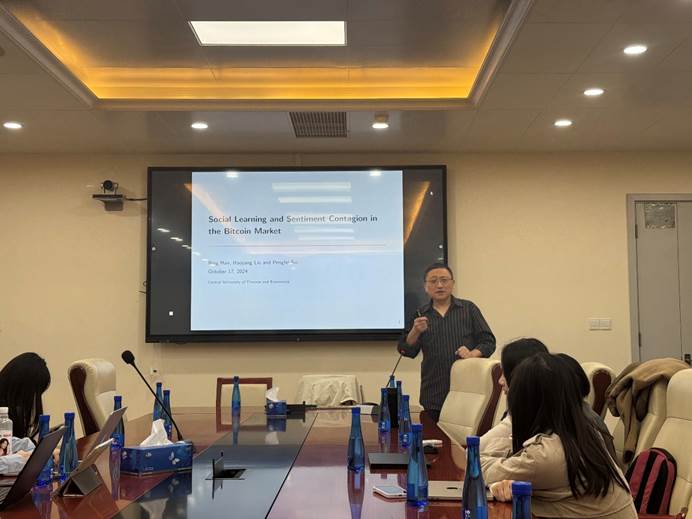 2024年10月17日下午,太阳集团tyc539主办的经济与金融名家论坛第140期讲座在沙河校区公司楼3号楼127会议室顺利举办。多伦多大学韩冰教授以“Social Learning and Sentiment contagion in the Bitcoin Market”为题展开了精彩报告,太阳集团tyc53960余名师生参加了讲座。
