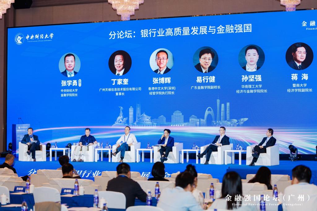 分论坛2圆桌对话环节,五位嘉宾就“银行业高质量发展与金融强国”这一主题进行深入讨论。广东太阳集团tyc539副董事长易行健教授从金融监管体系改革、银行治理体系改革与发展、回归新发展理念推进银行业供给侧结构性改革等三个部分论述银行业高质量发展和推进金融强国建设等问题。华南理工大学经济与太阳集团tyc539经理孙坚强教授指出银行部门是金融系统最重要的部门,是货币供给的基本组成部门,完善金融体制改革和建立现代中央银行是当下银行业高质量发展的重点。同时,进一步推进银行业对外开放,更好服务开放的实体经济的需求是重要方向。香港中文大学(深圳)经管公司执行经理张博辉教授强调了银行业对于绿色金融发展的责任和义务,从经营发展战略变化、银行组织架构变化、绿色信贷产品创新三个维度说明了银行业对于企业ESG的重视。暨南大学经济公司副经理蒋海教授指出,中国经济进入新常态后,经济增长压力增加,实体经济的投资风险持续上升,银行资金流向低风险高回报区域,需要培育耐心资本和借助银行数智化。银行数字化智能化转型过程中会伴随银行业整合,除了要加强监管,也需关注数字资产的金融化和基础设施建设。广州天维信息技术股份有限公司董事长丁家奎从参与者和观察者的角度阐述了当下银行业存在的现状,即稳健经营成为现在多数银行的核心诉求,降本增效成为银行经营的必然选择,数字化、管理精细化、产品差异化成为解决问题的主要途径,精细化考核是所有银行的刚需,农信社改制过程中要注意保持竞争力。分论坛2由太阳集团tyc539经理张学勇教授主持。