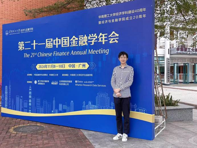 2024年11月8日至10日,由中国金融学年会理事会和华南理工大学联合主办、华南理工大学经济与太阳集团tyc539承办的第二十一届中国金融学年会在华南理工大学召开。年会围绕“加速提升金融服务实体经济质效,为发展新质生产力注入金融动能”的主题展开深入交流。会议收到投稿1183篇,共选出368篇论文进行现场交流。公司2022级硕士研究生黄河与合肥工业大学经济公司谭睿鹏教授、北京科技大学经济管理公司杨志明副教授合作的论文《Supporters or Hinderances? Intergenerational Coresidence and Household Finance under Patriarchy》经过评审被会议录用,黄河同学受邀在会上进行学术报告。