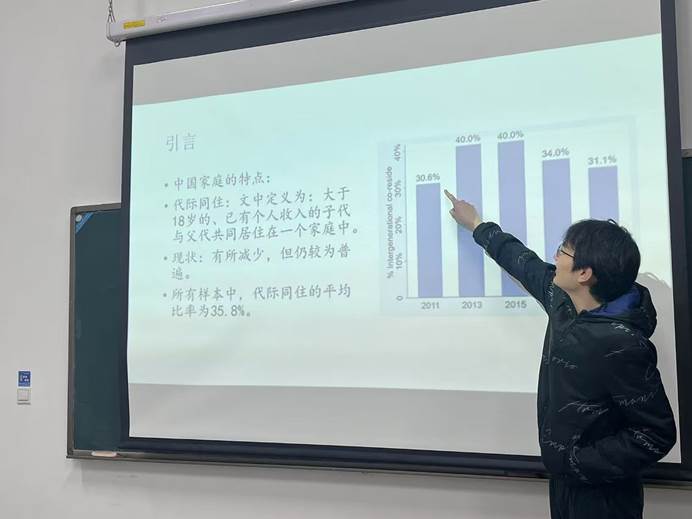 11月10日上午,黄河同学在平行论坛第四节,分会场108上进行了论文汇报。黄河同学报告了论文《Supporters or Hinderances? Intergenerational Coresidence and Household Finance under Patriarchy》。文章选取了中国家庭金融调查2011—2019年共五期数据,对社会性别规范下代际同住对家庭金融的影响进行了研究。研究结果表明:第一,夫妻中一方成为家庭决策人的概率会因代际同住的己方父母而提高;第二,代际同住的父母对家庭金融表现有正面影响,包括金融市场参与、资产组合分散度和财产性收入;第三,社会性别规范也会影响到代际同住的父母,在社会性别规范更传统的群体,代际同住的父母对家庭金融的促进作用更弱;最后,对社会性别规范的冲击会影响到代际同住的父母的作用,进而影响到家庭金融。