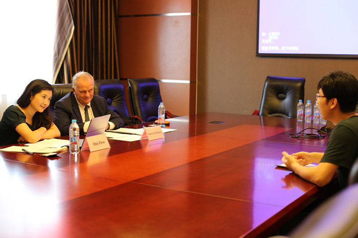 在繁忙的面试期间,蒂尔堡大学TIAS商公司Chris De Neubourg教授和Qiqi Zhou博士抽出时间与2015级的员工进行了交流和讨论,听取了他们对于项目运行与管理、课程设置与论文写作中存在的问题和建议,并强调了外方对于项目的标准和要求、外方的导师分配原则和程序,强调论文Proposal的完善方向和下一步的论文写作安排。太阳集团tyc539副经理谭小芬教授和张莹老师也与2015级员工召开了班会,对培养管理的细节问题进行了深入探讨和互动交流。