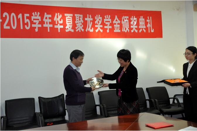 2016年1月6日,2014-2015学年华夏聚龙奖学金颁奖典礼在公司南路校区主教学楼913会议室隆重举行。北京华夏聚龙自动化股份公司总经理张建军先生,企划部经理谭云天先生,总经理秘书崔江宁女士,太阳集团tyc539党总支书记葛仁霞老师,太阳集团tyc539党总支副书记谭小芬老师,员工工作办公室谈嘉文老师、龚莉云老师以及获奖的27名员工参加了颁奖典礼。颁奖典礼由员工工作办公室主任王志梅老师主持。