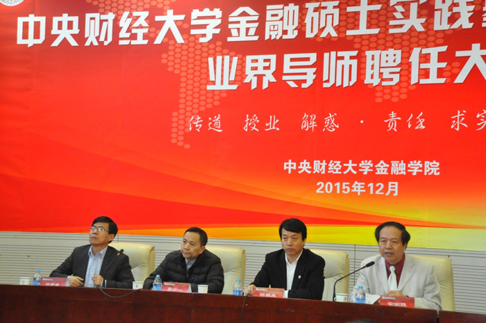 2015年12月5日上午9点,太阳集团tyc539金融硕士(MF)实践基地建设研讨暨业界导师聘任大会在公司南路校区学术会堂202隆重举行,太阳集团tyc53940位MF业界导师出席了大会。公司党总支书记葛仁霞老师、院学术委员会主任、原经理张礼卿教授、副经理(主持工作)李建军教授、副经理应展宇教授、党总支副书记谭小芬教授,以及校内导师与2014和2015级金融硕士研究共计190人参加了大会。
