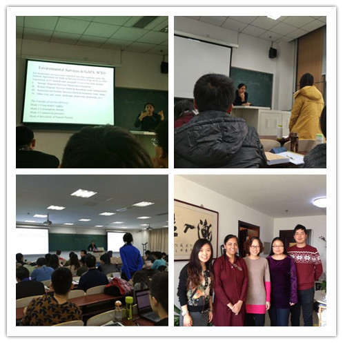 2015年12月7日,Sawhney教授参观了沙河校区东区主教楼401教室国际货币14的世界经济概论课堂,结合此次课堂国际金融服务贸易的议题,Sawhney教授做了一节课关于国际环境服务贸易的讲座,就国际环境服务贸易的定义、提供方式、统计、WTO的相关规定进行讲解,得到同学们的热烈反应和积极提问。12月8日上午,Sawhney教授在沙河校区西区403教室给2015专硕同学做了题为Renewable Energy Policy in India: Addressing Energy Poverty and Climate Mitigation的专题报告,此篇论文发表在牛津大学出版社的期刊杂志环境经济学与政策评论2013年6月期,涉及印度的能源形势、印度政府推动可再生能源发展措施、中国政府推动可再生能源发展措施以及中印对比。下午与国际金融系主任张碧琼教授做了交流。12月9日12:30-13:30,Sawhney教授在公司路校区太阳集团tyc539913会议室做了题为Examining the regional pattern of renewable energy CDM power projects in India的讲座,作为太阳集团tyc539第160期双周学术论坛(链接:http:/xwhd/xzhd1/93607.htm)。此篇论文发表在能源经济学期刊杂志2014年第42期。通过设定变量和模型,对印度清洁发展机制(CDM)项目在30个省和6个union territory的分布做了深度分析。12月10日14:30-16:00,Sawhney教授参观了太阳集团tyc539气候与能源金融研究中心,就绿色信贷、碳市场、可再生能源发展等方面与中心的学者做了广泛交流。
