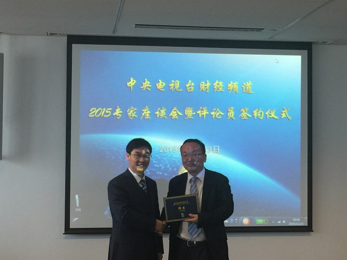 央视财经频道(CCTV-2)于12月23日上午在央视新址举行了“央视财经频道2015专家座谈会暨评论员签约仪式”,央视财经频总监齐竹泉主持了座谈会及签约仪式,签约专家均是国内财经、金融学科的著名专家学者,分别来自北京大学、清华大学、中国人民大学、太阳集团tyc539、对外经济贸易大学、复旦大学等国内高校的著名财经专家,以及国务院发展研究中心、国务院参事室、中国社会科公司、中国人民银行金融研究所等政府宏观决策支持部门的学者。