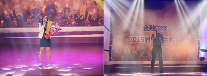 晚会分为岁月流金和梦想起航两个篇章。歌曲联唱“金院好声音”组合亮出了他们的青春最强音,首先出场的组合深情献唱了《因为爱情》,让大家瞬时陷入了暖暖的爱意中;紧接着变换的组合带来了《我的秘密》与《夏天秋天》两曲清新的歌曲,把学子们对同学的友情、对父母的感恩之情自然地流露出来;最后由戴韡老师加入的师生歌曲带来的《you rise me up》把全场的情意渲染得更加浓厚了。