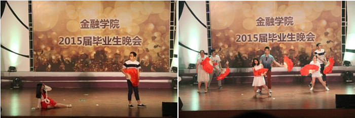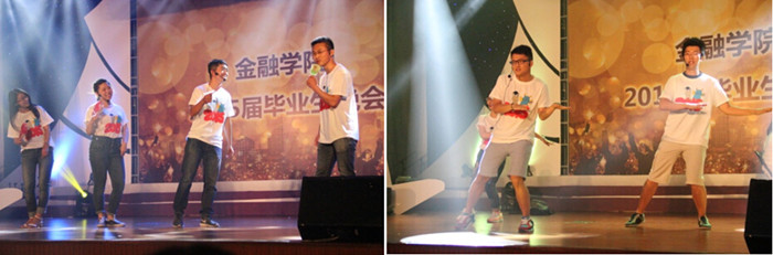 在歌舞表演间隙,一首首打油诗与一句句顺口溜组成的“漫谈金院”语言节目以同学们扎实的文化底蕴与幽默的语言艺术给观众们带来了阵阵欢乐;而后的情景剧“金砖追梦手册”则用夸张的表演与改编的劲歌展现了毕业生们找工作的情景,充分展现了同学们天马行空的想象力与积极向上的生活态度,感染了现场每个人。