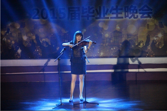 在几束聚光灯的聚焦下,由刘婧宜同学带来的小提琴独奏《查尔达斯舞曲》俨然将学术会堂变成了金色大厅,古典器乐带来的明快而庄重的奇妙感觉让同学们无不为之吸引;意犹未尽之时,一人独奏顷刻之间变成了笛子与小提琴合奏的《爱的致意》又一次展现了古典音乐带来的特殊魅力,也体现了刘婧宜和周景卓两位演奏者的默契配合。