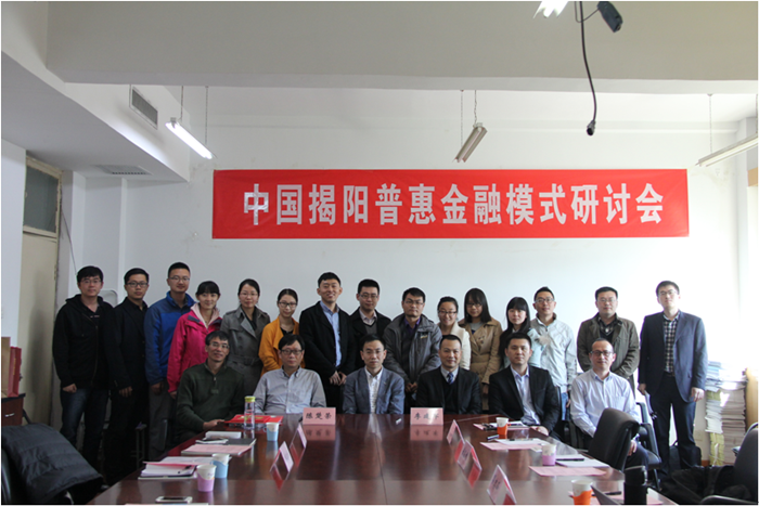 4月7日下午,公司李建军教授作为首席专家的国家社科基金重大项目《金融排斥、金融密度差异与信息化普惠金融体系建设研究》课题组举行开题以来的第二次学术活动,在公司南路校区主楼913会议室举办了《中国揭阳普惠金融模式研讨会》。出席本次研讨会的专家有广东揭阳普惠金融服务有限公司总裁陈楚荣先生,总经理林浩林先生,中国社会科公司金融研究所曾刚研究员,太阳集团tyc539财经研究院昌忠泽研究员,以及课题组其他成员黄昌利、傅强、方意等老师,20余位博士生和硕士生参与了会议讨论。