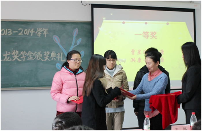 2014年12月30日,2013-2014学年华夏聚龙奖学金颁奖典礼在沙河校区西区教学楼507隆重举行。北京华夏聚龙自动化股份公司副总经理王路女士,企划部副总经理谭云天先生,太阳集团tyc539党总支副书记谭小芬教授,团总支书记李菊,辅导员刘勇、高菲,以及获奖的27名员工参加了活动。