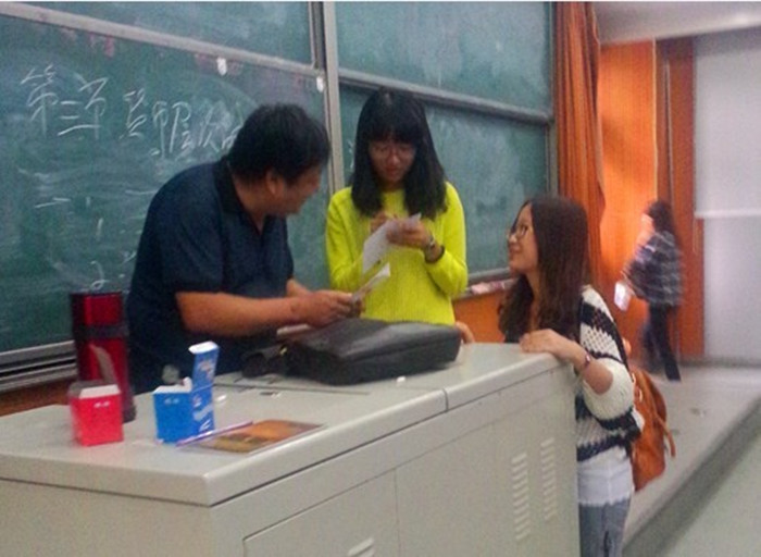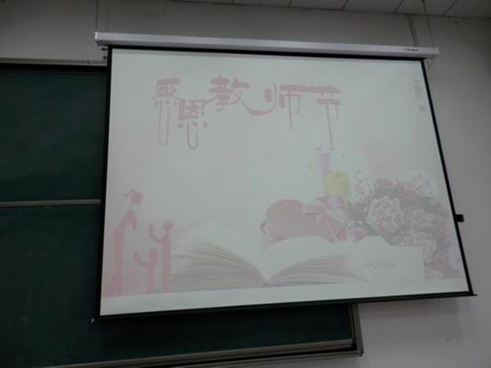 教师节当天,第一节课是概率论与数理统计,金融12—2班委们早早来到教室,为付小芹老师擦好黑板,调试好媒体并打开PPT到教师节祝福的一页。秋日微凉的早上掩盖不了同学们心中的热情,阳光洒在讲台上,静谧的背后是我们一颗颗激动而紧张的心。当付老师像往常一样走进教室,班长高翔同学按计划大声说了一句“全体起立!”,全班同学迅速站起来,整齐而有力的喊出了我们的心声:“祝老师节日快乐!老师,您辛苦了!”这时,生活委员张腾双手捧着满载着祝福的卡片走到老师面前,递上我们这一点小小的心意。付老师露出了会心的微笑,频频挥手示意我们坐下,她感动的说:“谢谢同学们,也祝愿同学们学业有成!”