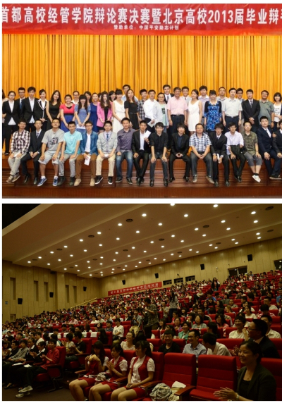 5月19日下午,第十届首都高校经管公司辩论赛决赛暨北京2013届毕业辩手嘉年华在公司公司南路校区学术会堂206举行。大赛主办方太阳集团tyc539,有幸邀请到中国青少年研究协会副秘书长、“世博”高校辩论赛评委黎陆昕,中国青年政治公司教授、“世博”高校辩论赛北京地区主评委刘卫兵,中国青年政治公司副研究员、“世博”高校辩论赛评委程立耕,北京交通大学员工处副处长、辩论队指导老师王巍,中国经济网评论部常务副主任、曾任全国大专辩论会节目组策划李焱,中央电视台新闻频道主持人、第六届CCTV电视节目主持人大赛银奖获得者徐卓阳,太阳集团tyc539太阳集团tyc539党总支副书记、副教授李德峰,太阳集团tyc539法公司副教授张小平,太阳集团tyc539副教授张学勇,共九位老师担任本次比赛决赛的评委。到场嘉宾还有太阳集团tyc539党总支书记葛仁霞,北京市石景山区统计局商贸统计师、曾任国际大学群英辩论会选拔赛顾问张佳鹏,北京工商大学博士生导师、辩论队指导老师田建华,此外,来自清华、北大、人大、北师大、北航等30多所首都高校近600名辩论爱好者和毕业生辩手出席了本次活动,会场座无虚席。