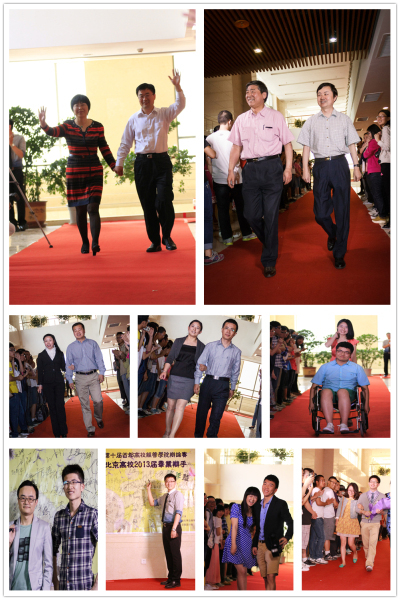 下午2点整,两支决赛队伍、毕业生辩手代表和领导、嘉宾们分别依次亮相红毯,通过观众簇拥的红毯步入会场并在签名墙签名、拍照留念。外景主持人幽默适时的介绍,让别致的红毯秀环节充满了掌声和欢声笑语。每一组嘉宾步入红毯,都受到了明星版的礼遇,掌声欢呼声和高频的闪光灯将现场气氛推向了高潮。