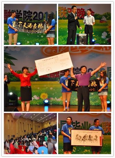 高低年级深度互动,晚会节目精彩纷呈。2009级金融工程1班的歌舞表演《青春纪念册》拉开晚会帷幕,四支歌舞演绎大一到大四四年成长的关键词,歌颂友情和爱情、奋斗和梦想;由本科生和研究生带来的相声《学武功》和《论中财》用幽默生动的语言回忆了学习生活的点点滴滴;2010级金融工程研究生用情景舞蹈《校园变奏曲》艺术地再现了研究生的学习、求职历程和毕业喜悦之情;由四届校园十佳歌手和楼道歌手带来的歌曲串烧《海阔天空》、《Can You Feel the Love Tonight》、《See You Again》和《北京北京》用最动听的旋律唱出对校园生活的眷顾和对毕业生的祝福;沙河校区本科生带来舞蹈《Not Myself Tonight》和《惊鸿舞》,研究生会的诗朗诵《假如我研三》,2010级本科生精心制作的视频《毕业快乐,see you!》道出对学长学姐的依依惜别之情;视频《金院足球,我骄傲》回顾了2013年中财杯足球赛中公司足球队的卓越表现,表达了员工们对公司强烈的自豪感和归属感。