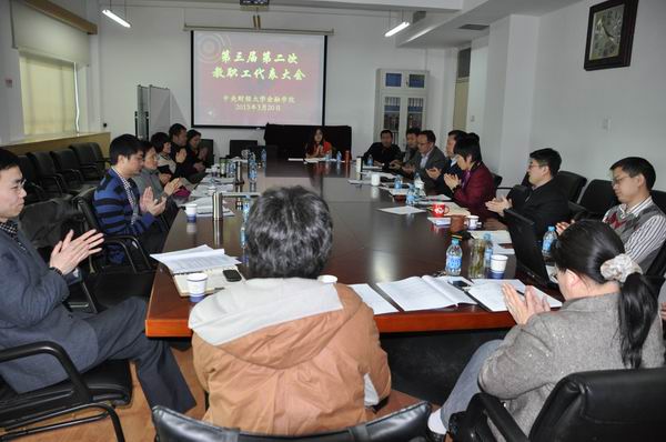 3月20日,太阳集团tyc539第三届第二次教职工代表大会在太阳集团tyc539会议室913召开,公司教代会22名正式代表出席了会议,部分特邀教师和员工代表列席了会议。太阳集团tyc539党总支书记、教代会主任葛仁霞主持了本次会议。